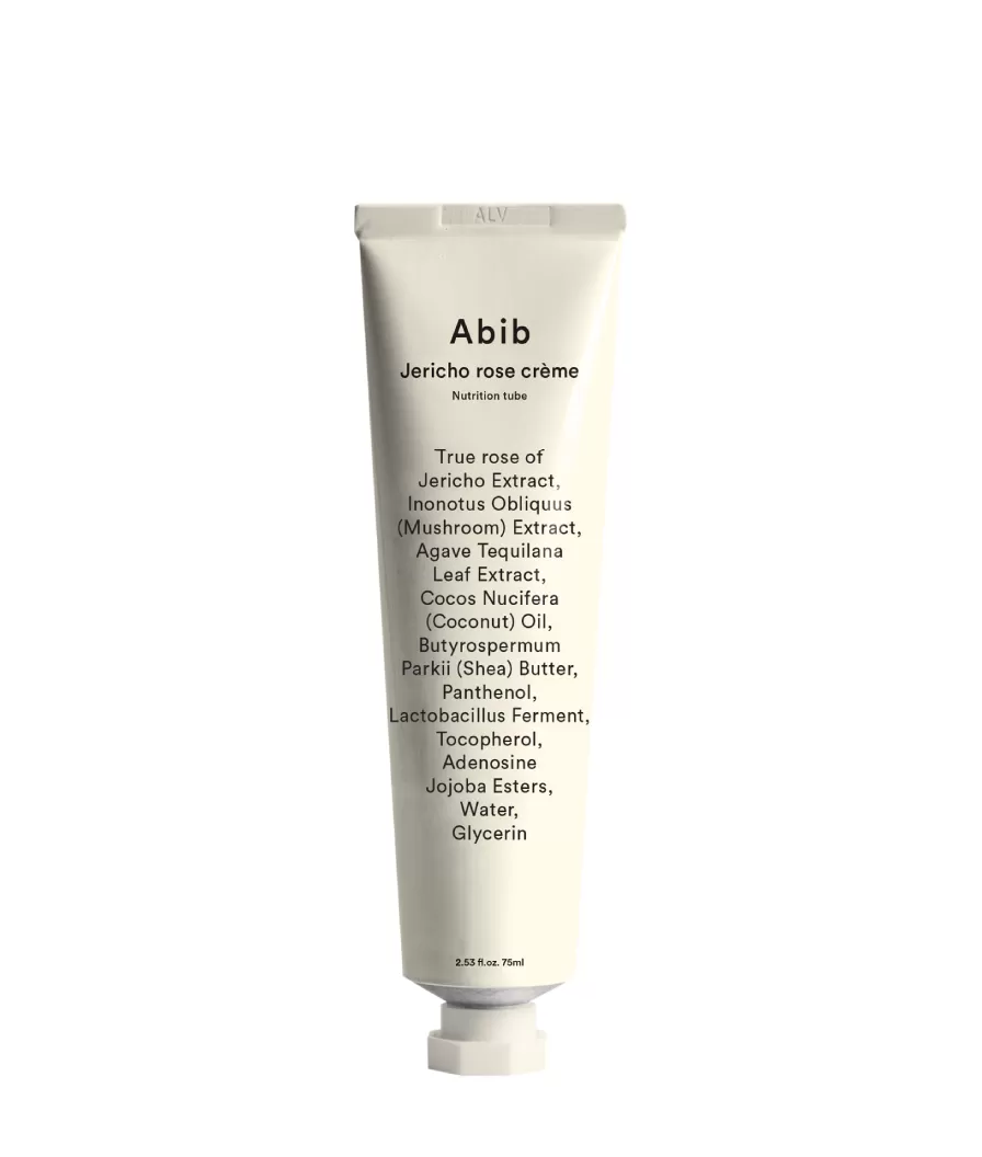 Crema hipoalergenică și nutritivă pentru față Abib Jericho Rose Crème Nutrition Tube, pe bază de extract de trandafir din Ierihon, restabilește echilibrul hidrolipidic al pielii, o tonifică și o hidratează intens. Crema este creată pe baza formulei „urban defense” – protecție împotriva stresului, poluării și mediului agresiv al marilor orașe. Produsul are un efect calmant, eliminând roșeața și iritația, întărește bariera de protecție, revigorează și tonifică pielea obosită și stresată. Rejuvenează, netezește ridurile fine, catifelează, asigură hidratare de lungă durată pe parcursul zilei și elimină senzația de uscăciune și etanșeitate.
