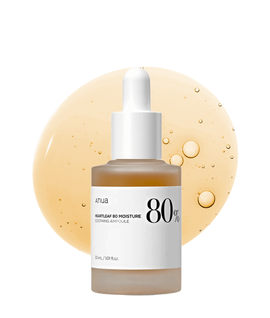 Ampula calmantă Anua Heartleaf 80% Moisture Soothing Ampoule pe bază de Houttuynia hidratează intens, are un puternic efect cicatrizant și calmant. Produsul elimină uscăciunea și senzația de disconfort, ajută la tratarea acneei, elimină roșeața, iritația și mâncărimea, reduce intensitatea vaselor dilatate. Înmoaie pielea, asigură o hidratare de lungă durată, prevenind apariția iritațiilor și a descuamării.