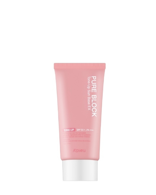 Bază de machiaj cu protecție solară Apieu Pure Block Tone-Up Sun Base SPF50/PA+++ pe bază de filtre fizice cu subton de roz deschis este recomandată posesorilor de orice tip de ten, în special tenului mixt și gras. Baza de culoare roz (nu are nuanță saturată) pentru machiaj îmbunătățește nuanța pielii, o pregătește pentru machiaj, asigură stabilitatea produselor cosmetice decorative prin absorbția excesului de sebum. Produsul protejează pielea de radiațiile solare, pigmentare și fotoîmbătrânire. Oferă pielii un tonus uniform și netezime, hidratează, crește elasticitatea, calmează, strânge porii. Are o consistență ușoară.