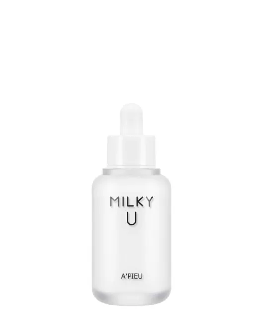 Serul facial Apieu Milky U Serum pe bază de proteine din lapte (60.4%) hrănește și hidratează intens pielea, oferindu-i o strălucire naturală. Serul uniformizează tonul și textura pielii, elimină uscăciunea, ridurile cauzate de uscăciune, roșeața, iritația și descuamarea, ajută la menținerea și refacerea barierei de protecție. Produsul reduce sensibilitatea, elimină deshidratarea, netezește și întinerește pielea, are un efect general de vindecare, crește elasticitatea și fermitatea prin stimularea sintezei de colagen. Serul face pielea moale și netedă, are un efect cicatrizant și calmant, elimină tenul tern sau lipsit de strălucire, stimulează procesele de regenerare și reînnoire.