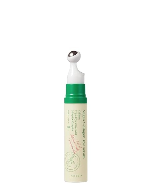 Serul hidratant, vegan pentru ochi AXIS-Y Vegan Collagen Eye Serum pe bază de colagen vegetal combate pungile, cearcănele și liniile fine de expresie. Produsul are un efect întineritor, netezitor, hrănitor și are o formulă cu absorbție rapidă. Tehnologia specială asigură o penetrare profundă a ingredientelor, iar aplicatorul răcoritor CoolTouch Eye este special conceput pentru îngrijirea delicată a zonei ochilor și pentru un masaj ușor. Serul iluminează cearcănele, încetinește apariția modificărilor legate de vârstă, elimină uscăciunea și oferă hidratare de lungă durată. Studiile clinice au arătat o îmbunătățire de 43% a stării pielii în 3 zile, cu o îmbunătățire generală de 67% în 2 săptămâni. Precum și o reducere cu 22% a cearcănelor în câteva minute și o reducere cu 7% a cercurilor întunecate în 2 săptămâni.