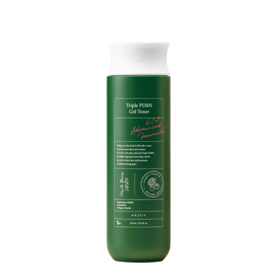Tonerul multifuncțional AXIS-Y Triple PDRN Gel Toner este creat pe baza unui complex vegetal brevetat de polinucleotide din fructe de pădure Triple Berry PDRN și a astaxantinei, un antioxidant puternic. Are o textură de gel revigorantă și răcoritoare, se absoarbe rapid fără a lăsa senzație de greutate sau lipiciune, asigurând o hidratare de lungă durată. Tonerul calmează roșeața și iritațiile, susține procesele de regenerare, întărește bariera de protecție și tonifică pielea stresată.