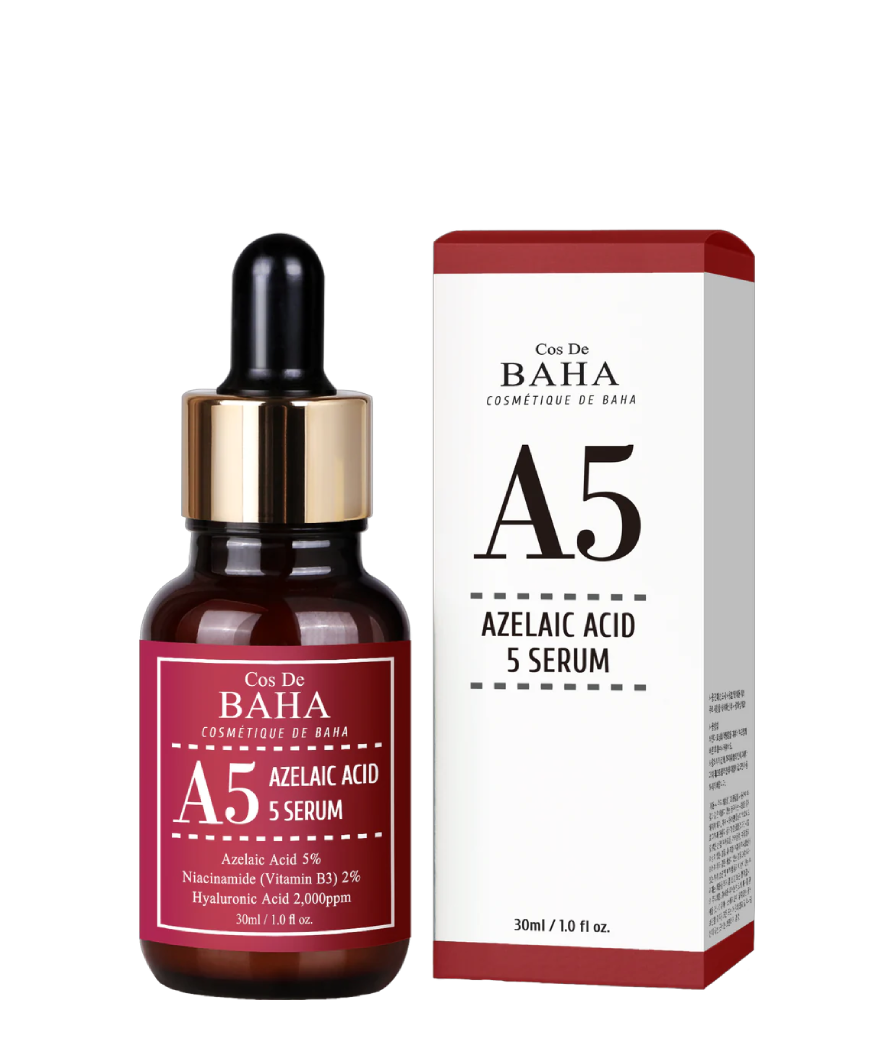 Serul antiinflamator Cos De BAHA A5 Azelaic Acid 5 Serum pe bază de 5% acid azelaic calmează iritația și roșeața, exercită un efect antiinflamator și iluminator, luptă cu acneea și reduce inflamația și roșeața vaselor dilatate în caz de cuperoză, îmbunătățește starea pielii în caz de rozacee. Serul reglează producția de sebum cutanat și îmbunătățește tonul și textura pielii, exercită un efect antioxidant și de întinerire, îngustează porii, hidratează și susține bariera de protecție.