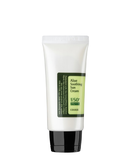 Солнцезащитный крем с экстрактом алоэ и высоким фактором защиты от солнца COSRX Aloe Soothing Sun Cream на основе химических фильтров нового поколения быстро впитывается, сохраняет естественную влажность кожи, успокаивает чувствительную кожу, препятствует появлению признаков стресса и покраснения эпидермиса.