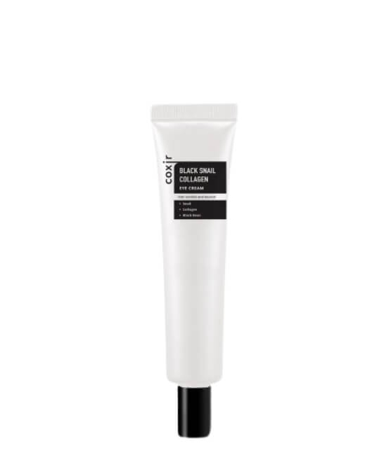 Crema anti-îmbătrânire pentru pielea din jurul ochilor Coxir Black Snail Collagen Eye Cream acționează împotriva ridurilor și reduce vizibil cearcănele, liniile de expresie și reduce profunzimea cutelor mari ale pielii. Hidratează, hrănește și mărește fermitatea și elasticitatea. Are efect de lifting. Crema calmează iritațiile și protejează pielea de factorii negativi de mediu. Oferă strălucire naturală, catifelează și netezește, hrănește și hidratează intens pielea. Poate fi folosit atât în jurul ochilor, cât și pe frunte, buze și pliurile nazolabiale.
