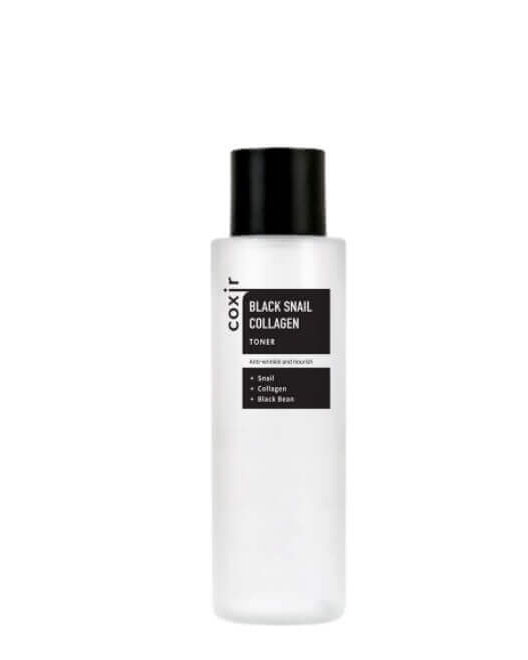 Tonerul anti-îmbătrânire Coxir Black Snail Collagen Toner hrănește și hidratează pielea, calmează, îmbunătățește fermitatea și elasticitatea. Tonerul îmbunătățește tenul, netezește textura pielii, are un efect intens de întinerire, ajută la eliminarea pigmentării, post-acnee. Ingredientele active au efect de vindecare și regenerare, regenerează și calmează pielea, tonifică și întăresc, reduc inflamația și iritația.