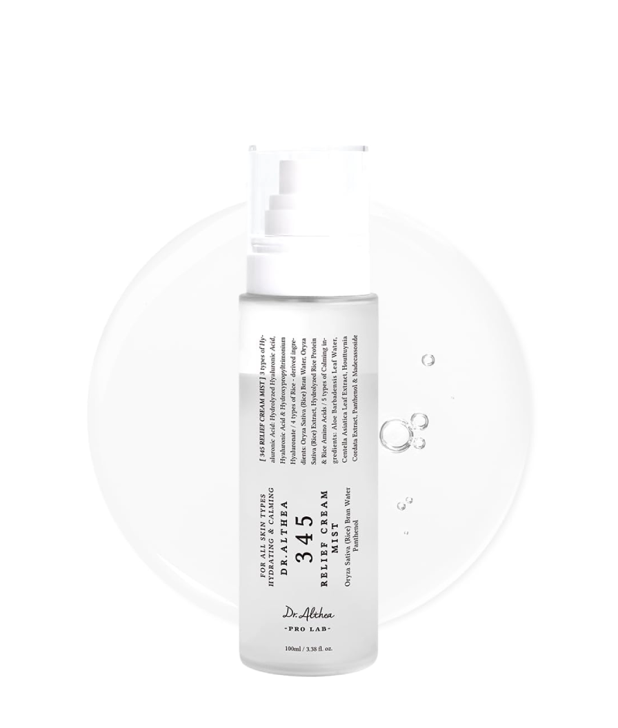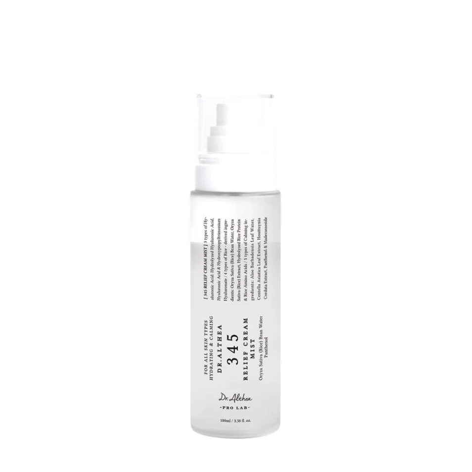 Produsul multifuncțional Dr. Althea 345 Relief Cream Mist este o cremă-mist delicată care, simultan, hidratează, calmează și restabilește pielea. Produsul poate fi utilizat înainte de machiaj, ca bază; după curățare, ca toner pentru hidratare și restabilirea pH-ului pielii; pe parcursul zilei pentru o hidratare rapidă și împrospătarea pielii, la apariția senzației de uscăciune sau iritare; ca produs suplimentar pentru hidratare după îngrijirea obișnuită (cremă sau ser).