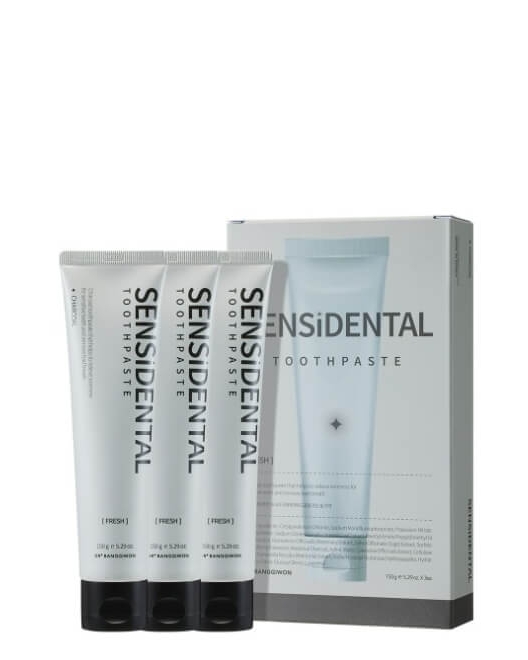 Pasta de dinți cu cărbune sigură pentru toți membrii familiei DR+ BANGGIWON Sensidental Toothpaste Fresh conține nitrat de potasiu, o componentă specială a pastelor de dinți pentru dinți sensibili, care nu este inclusă în pastele de dinți convenționale. Prin penetrarea canalelor dentinare, acesta reduce hipersensibilitatea și durerea dinților, ameliorând disconfortul prin eliminarea reacțiilor dinților la cald sau la rece. Pasta conține, de asemenea, hidroxiapatită, care formează o peliculă protectoare pe dinți și monofluorofosfat de sodiu pentru prevenirea cariilor dentare.