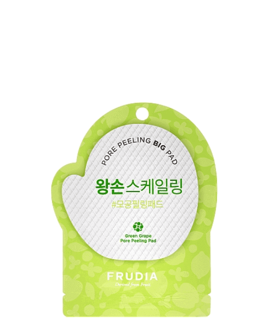 Пилинг-пэд для очищения пор с зелёным виноградом Frudia Green Grape Pore Peeling Big Pad деликатно отшелушивает ороговевшие клетки эпидермиса, смягчает огрубевшую кожу, удаляет загрязнения, излишки кожного сала и очищает поры. Пэд имеет оптимальный pH-баланс (5.5-6.0), нормализует кислотно-щелочной баланс эпидермиса, не взывает сухости и раздражений. Средство растворяет жировые пробки и удаляет загрязнения из пор, регулирует работу сальных желёз и снижает жирность кожи, успокаивает зуд и воспаления.