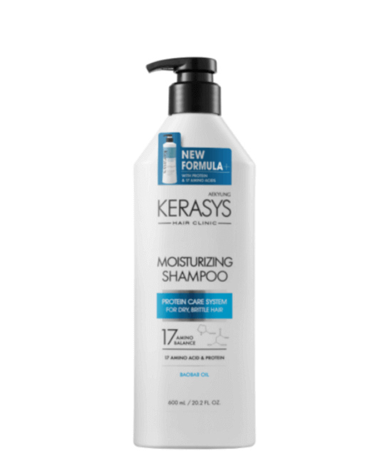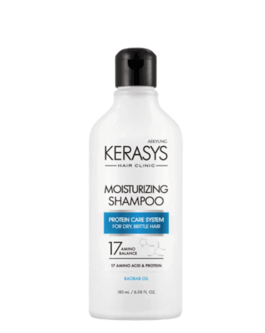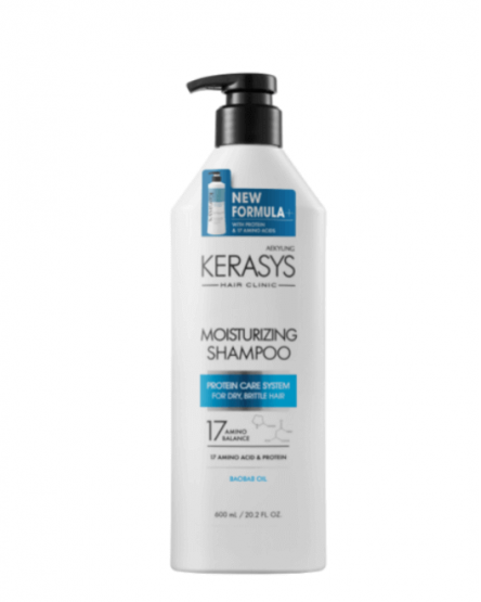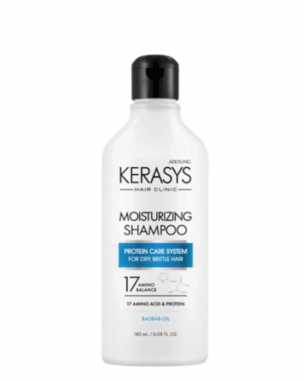Șamponul hidratant Kerasys Clinic Moisturizing Shampoo este special formulat pentru părul uscat, tern, fragil și poros predispus la uscare, vârfuri despicate și electricitate statică. Șamponul curăță eficient și delicat scalpul și părul, promovează hidratarea intensivă și refacerea părului, face părul neted, elastic, reduce aspectul pufos și fragilitatea pe lungime, stimulează creșterea și are un efect calmant asupra scalpului. Produsul ajută la îngroșarea părului, îi conferă strălucire și îl face mătăsos.