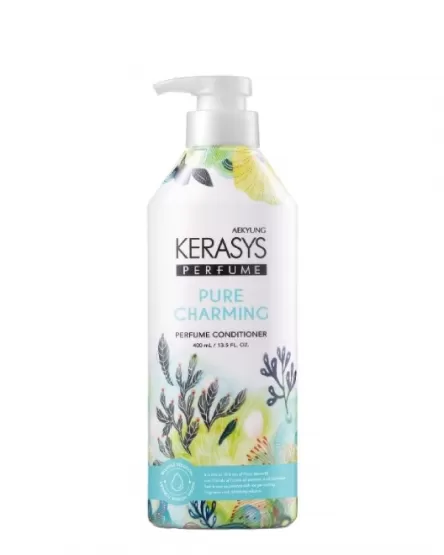 Kerasys Perfumed Conditioner Pure Charming este un balsam hidratant, parfumat pentru păr uscat și fragil, care întărește părul de la rădăcină până la vârfuri, reduce ruperea, hidratează și hrănește, reducând riscul de despicare a vârfurilor. Produsul netezește foliculii părului, făcându-i netezi, cu aspect mătăsos. Reduce tendința de încrețire și ușurează pieptănarea. Caracteristica cheie a seriei „Perfumed Line” este prezența aromelor parfumate subtile.