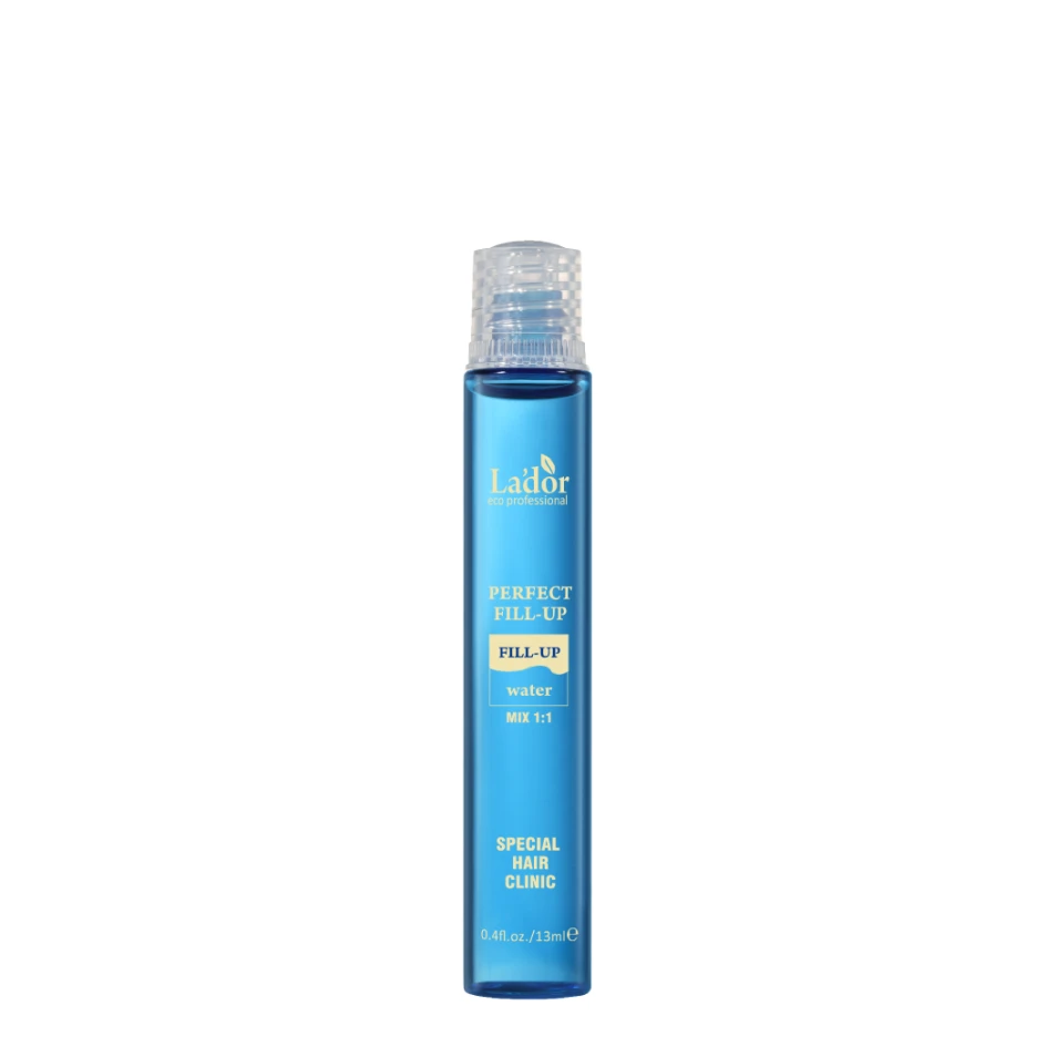 Fillerul LADOR Perfect Hair Fill-Up cu concentrație ridicată și cu efect de autoîncălzire se transformă din lichid în cremă atunci când este amestecată cu apă într-un raport de 1:1. Este un tratament intens revitalizant pentru părul grav deteriorat care umple zonele deteriorate ale părului, oferind un păr neted, strălucitor și dens. Produsul cu o concentrație ridicată de proteine crește elasticitatea și rezistența părului, elimină ruperea și riscul de vârfuri despicate. Hidratează, hrănește intensiv și blochează evaporarea umidității, prevenind uscarea.