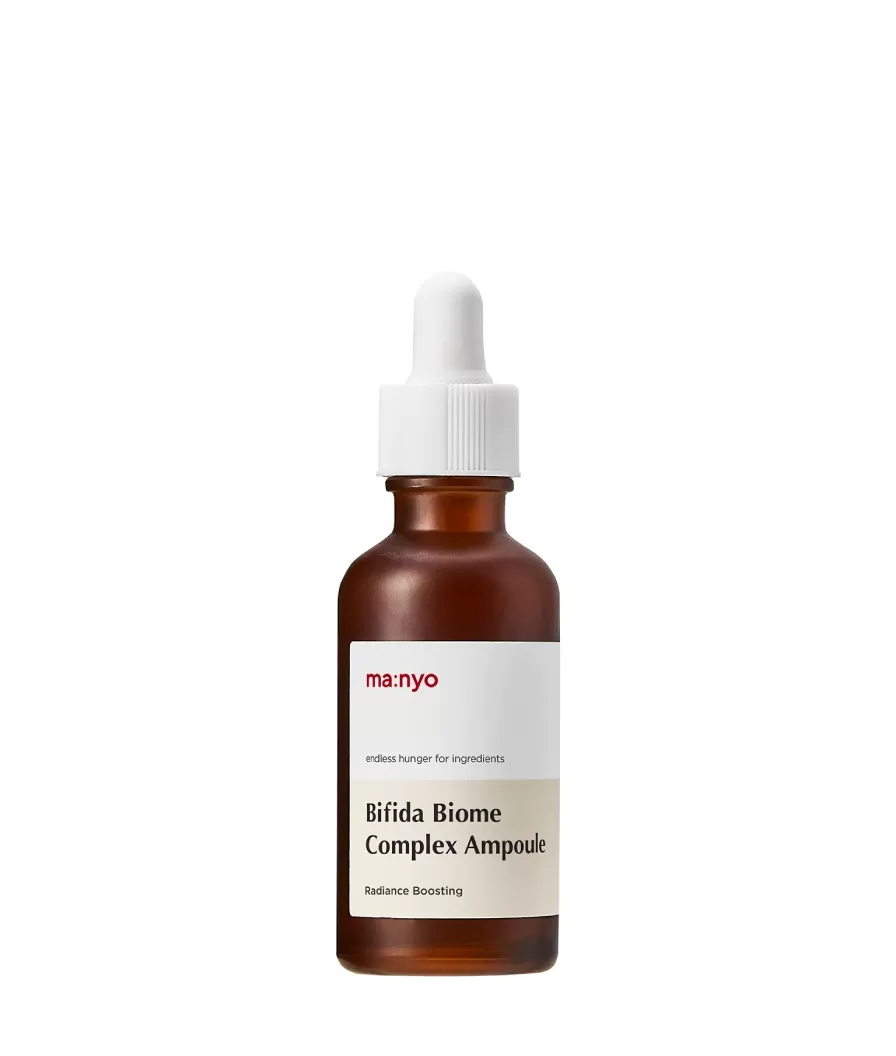 Ampula regeneratoare Manyo Bifida Biome Complex Ampoule pe bază de lactobacili și bifidobacili (66.94%) accelerează procesele de regenerare și refacere, uniformizează tonul pielii și îi conferă strălucire, îmbunătățește imunitatea externă a pielii, eliminând roșeața și iritațiile, reduce intensitatea proceselor inflamatorii, inhibând creșterea bacteriilor patogene; are un efect de întinerire.