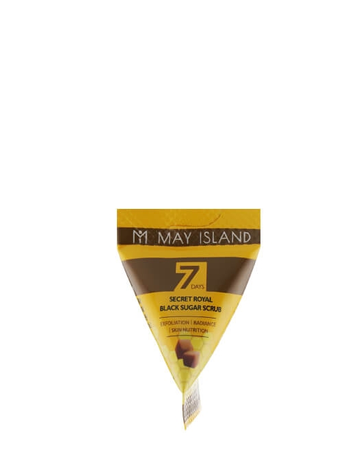 Скраб для лица May Island 7Days Secret Royal Black Sugar Scrub на основе тровстникового сахара глубоко очищает кожу, обновляет, отшелушивает ороговевший слой клеток, способствует устранению черных точек и закрытых комедонов. Скраб оказывает антибактериальный эффект, удаляет излишки кожного сала, полирует кожу, придавая ей мягкость и гладкость. Средство питает и увлажняет кожу, способствует процессу регенерации, смягчает и разглаживает, выравнивает тон. Средство в порционных упаковках очень удобно брать с собой в поездку.