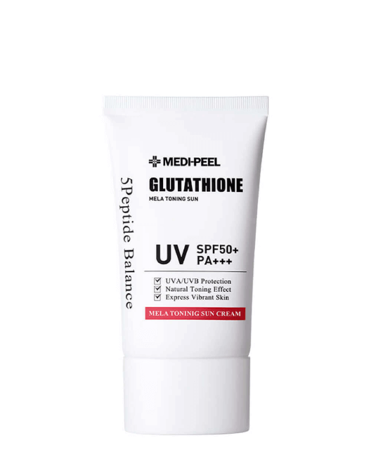 MEDIPEEL Bio-Intense Glutation Mela Toning Sun Cream cu efect de iluminare protejează pielea de efectele nocive ale radiațiilor solare cu filtre combinate. Formula Tone Up iluminează și uniformizează instantaneu pielea plictisitoare pentru o strălucire sănătoasă, menținând în același timp un aspect natural.