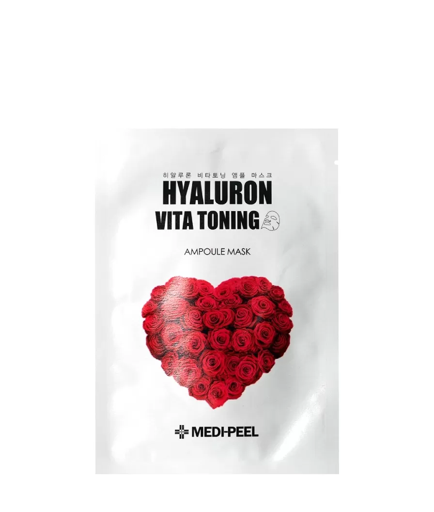 MEDIPEEL Hyaluron Vita Toning Ampoule Mask 2X – заметно выравнивает тон кожи и улучшает цвет лица. Стимулирует внутриклеточное кровообращение, обладает иммуномодулирующими и мощными регенеративными свойствами, запускает процессы обновления кожи. Обладает мощными омолаживающими свойствами, разглаживает морщины и препятствует образование новых.