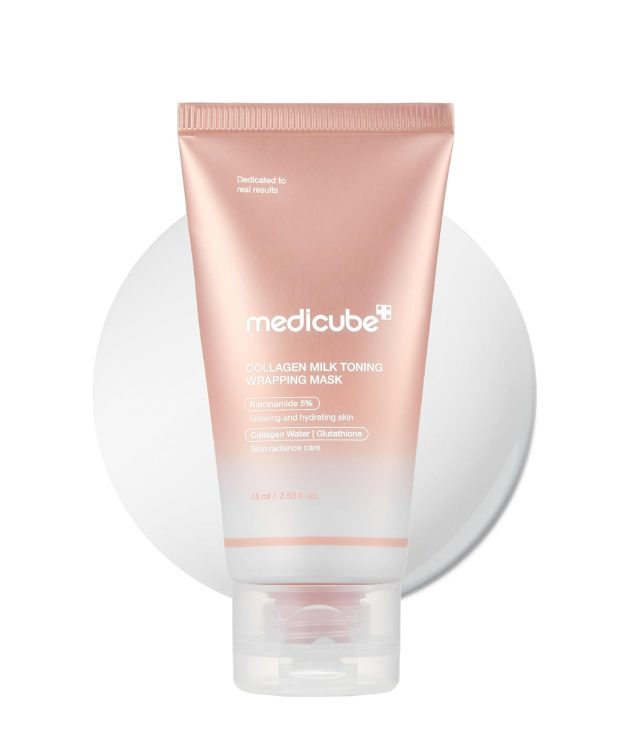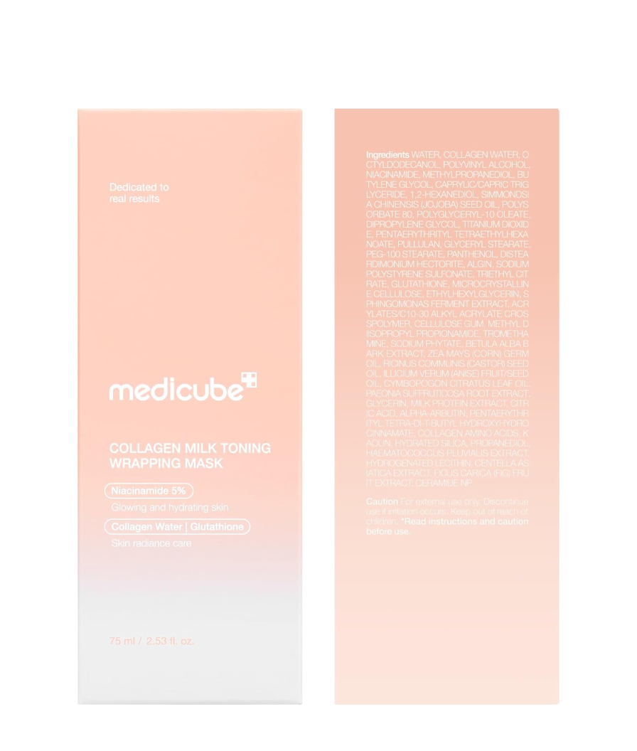 Masca-peliculă de noapte rejuvenantă Medicube Collagen Milk Toning Wrapping Mask pe bază de colagen crește densitatea, fermitatea și elasticitatea, are efect de lifting, conferă feței o strălucire sănătoasă și tonus. Stimulează sinteza fibrelor de colagen și elastină, întărește și încetinește modificările legate de vârstă, hidratează și contribuie la reținerea umidității, previne apariția ridurilor.