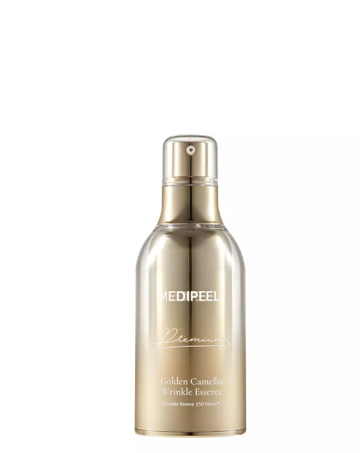 Esența oxigenată pentru față MEDIPEEL Premium Golden Camellia Wrinkle Essence pe bază de aur de 24 de karate are un efect puternic de întinerire, crește elasticitatea și fermitatea pielii, netezește ridurile fine și reduce profunzimea cutelor mari, încetinește procesul de îmbătrânire, elimină semnele de oboseală și stres. Esența stimulează sinteza colagenului și elastinei, are efect de lifting, încetinește apariția ridurilor faciale, calmează iritația și roșeața.