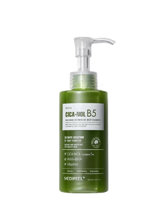 MEDIPEEL Phyto Cica-Nol B5 AHA BHA Vitamina Calming O2 Deep Cleanser este un gel-spumă de curățare, care reduce inflamația, îngustă porii și reglează glandele sebacee. Datorită bulelor de oxigen rezultate, produsul pătrunde cât mai adânc în pori, îndepărtează toate tipurile de impurități, îndepărtează machiajul obișnuit și persistent, de fond de ten și de protecție solară.