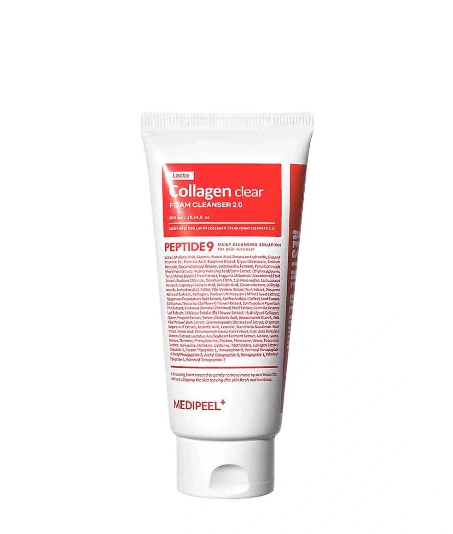 MEDIPEEL Lacto Collagen Clear 2.0 este o versiune actualizată a spumei de curățare pentru față anterioare pe bază de complex de colagen și lactobacili, o formulă mai puternică pentru o îngrijire maximă eficientă a pielii. Spuma îndepărtează impuritățile zilnice, reziduurile de machiaj și excesul de sebum. Spuma conține capsule care sunt compuse din enzime de lacto- și bifidobacterii, care accelerează procesele de regenerare, îmbunătățesc tenul și mențin pielea tânără, întăresc funcțiile de protecție ale pielii. Spuma are efect de întărire și ajută la îngustarea porilor. Crește fermitatea și elasticitatea pielii, calmează, ameliorează mâncărimea și iritația, uniformizează textura pielii și restabilește nivelul optim de hidratare, are efect antioxidant și de întinerire.