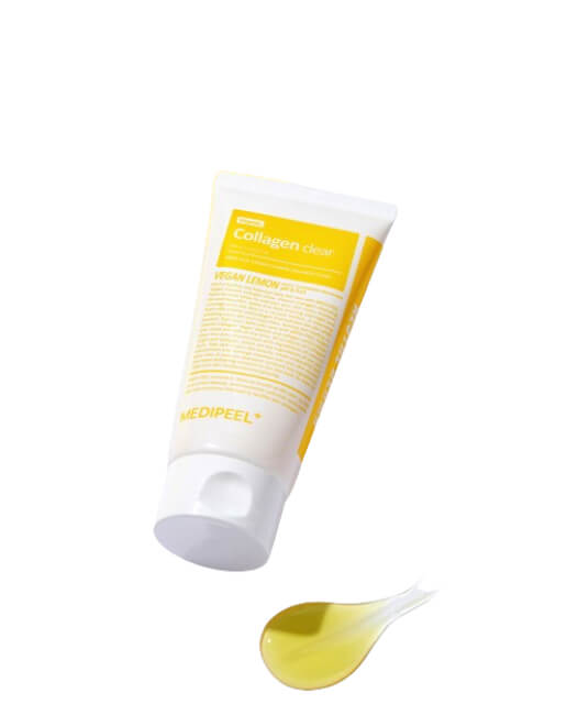 Spuma vegană de curățare a feței MEDIPEEL Vitamin Collagen Clear pe bază de extract de lămâie și un complex de 15 tipuri de vitamine curăță eficient pielea de reziduurile și impuritățile de machiaj, strânge și curăță porii, elimină tenul tern, uniformizează tonul, iluminează delicat pigmentarea și post- acneea, îmbunătățește culoarea pielii.