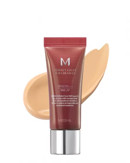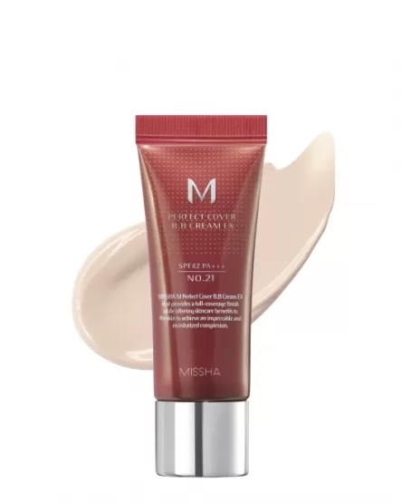Multifuncționala BB cremă Missha M Perfect Cover BB Cream EX SPF 42 PA+++ include funcțiile unui fond de ten și a unui corector, are o durabilitate ridicată, o bună camuflare a imperfecțiunilor pielii și oferă protecție solară suplimentară. Produsul oferă o acoperire de densitate medie, maschează acneea, pigmentarea, rozaceea, vitiligo și tenul neuniform.