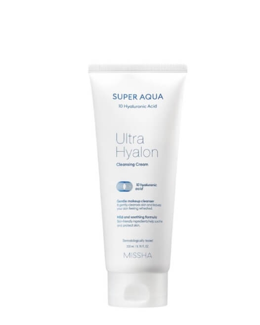 Crema de curățare Missha Super Aqua Ultra Hyalron Cleansing Cream este o alternativă la uleiul hidrofil. Un produs pe bază de complex de acid hialuronic dizolvă delicat machiajul, îndepărtează texturile dense și impuritățile și curăță porii. Produsul cu textură cremoasă favorizează hidratarea și calmarea, nu provoacă uscăciune și senzație de strângere a pielii și previne apariția punctelor negre și a comedoanelor închise. Produsul uniformizează tenul, împrospătează, tonifică, catifelează și este potrivit chiar și pentru pielea sensibilă.