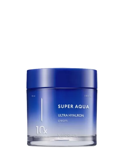 Crema hidratantă pentru față Missha Super Aqua Ultra Hyalron Cream pe bază de 10 tipuri de acid hialuronic are un puternic efect hidratant și regenerant. Crema asigură hidratarea de lungă durată a pielii, elimină uscăciunea și ridurile fine formate din cauza uscăciunii, calmează, ameliorează roșeața și iritațiile, înlătură senzația de tensiune și descuamare. Previne ridurile premature, îmbunătățește circulația sângelui și ameliorează relieful pielii. Produsul reface și întărește bariera lipidică și protejează pielea de factorii externi negativi, crește elasticitatea și fermitatea, catifelează, uniformizează ușor tonul pielii și conferă strălucire.