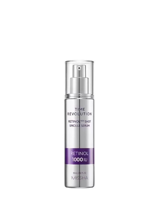Serul intensiv anti-îmbătrânire pe bază de retinol și spicule Missha Time Revolution Retinol 1000 Shot Spicule Serum este conceput pentru îngrijirea întinerire de seară și conține complexul Retinol Shot™, care include retinol pur și ingredientele sale de îmbunătățire.