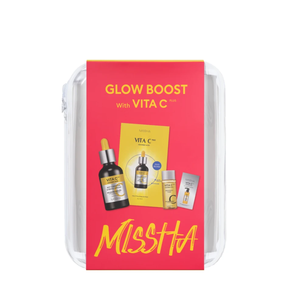 Setul cadou pentru față Missha Glow Boost with Vita C Plus include 4 produse care, datorită conținutului ridicat de vitamina C, oferă un puternic efect antioxidant și iluminator, fortifică pielea și vasele sangvine dilatate, elimină aspectul tern al feței și iritația, sporesc fermitatea și elasticitatea pielii.