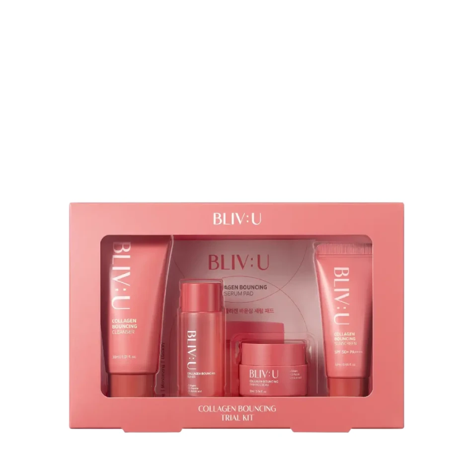 - BLIV:U Collagen Bouncing Toner 20 мл – увлажняющий и освежающий тонер помогает подготовить кожу к последующим этапам ухода, восстанавливает pH-баланс и улучшает эластичность.