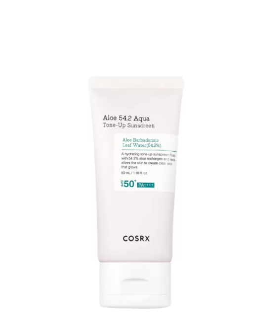 Увлажняющий корректирующий солнцезащитный крем COSRX Aloe 54.2 Aqua Tone-Up Sunscreen SPF50+/PA++++ обладает высокой степенью защиты от солнца, фотостарения, солнечных ожогов и пигментации.