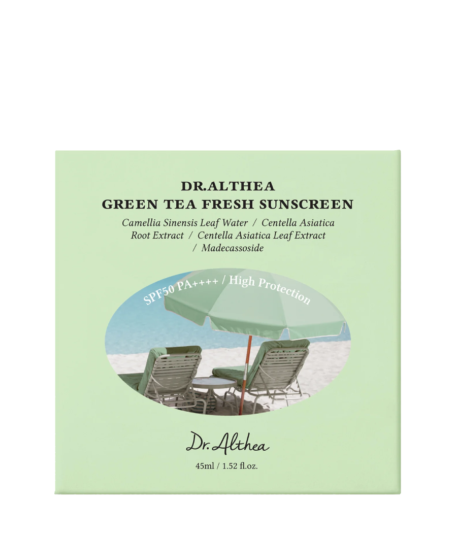 Освежающий солнцезащитный крем Dr. Althea Green Tea Fresh Sunscreen на основе зеленого чая и химических фильтров обладает легкой, водянистой текстурой; обеспечивает полноценную защиту от негативного влияния солнца, солнечных ожогов, пигментации и фотостарения. Крем оказывает выраженное успокаивающее действие на чувствительную и раздраженную кожу, обеспечивает длительное увлажнение и здоровое сияние кожи, оказывает омолаживающий и антиоксидантный эффект, регенерирует и восстанавливает кожу, устраняя покраснения, сухость и шелушения.