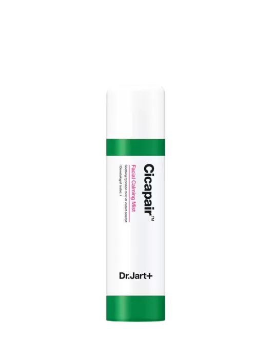 Успокаивающий мист для лица Dr Jart+ Cicapair Facial Calming Mist в формате аэрозоля моментально смягчает и увлажняет кожу, освежает, быстро успокаивает раздражение и устраняет покраснение, снижает чувствительность к внешним раздражителям. Мелкодисперсный спрей создаёт мельчайшие капли, за счёт чего мист равномерно распределяется по всему лицу и быстро впитывается. Обеспечивает длительное увлажнение кожи, способствует заживлению, снижению уровня воспалений и выравниванию тона, повышает барьерные функции эпидермиса и укрепляет расширенные сосуды, оказывая профилактическое действие против купероза.