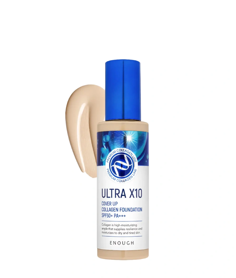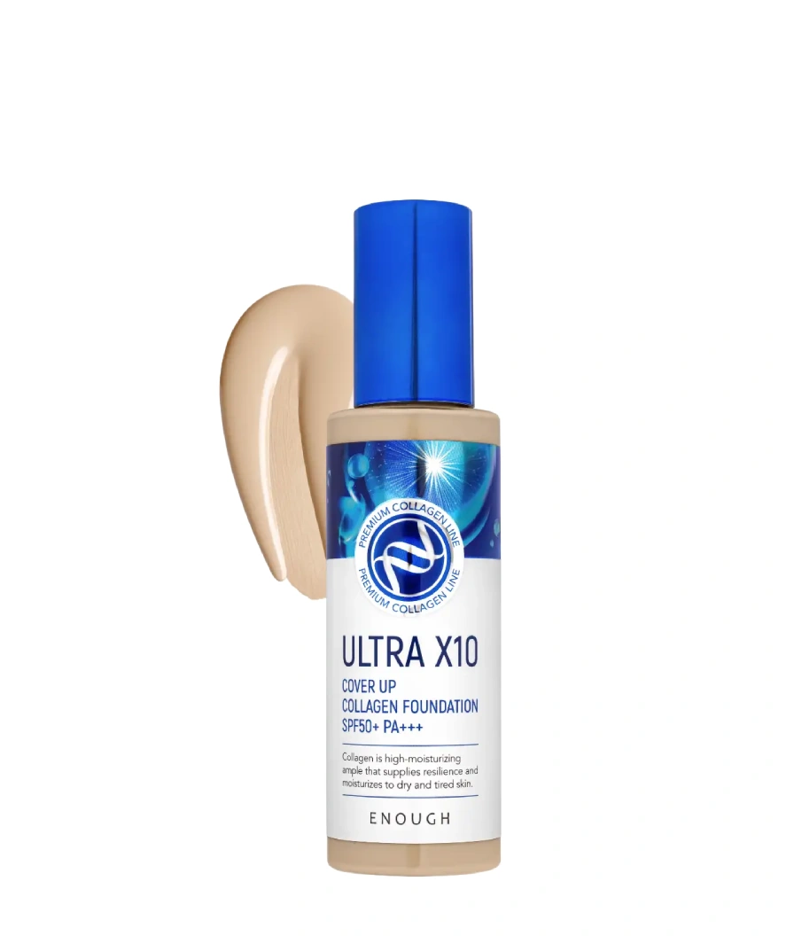 Увлажняющий тональный крем Enough Ultra X10 Cover Up Collagen Foundation SPF50+ PA +++ с высоким фактором защиты от солнца создает идеальное ровное и стойкое покрытие, выравнивает тон и рельеф лица, придает ему сияние и свежесть. SPF 50 обеспечивает дополнительную защиту от вредного излучения ультрафиолета и защищает вас на целый день. Средство насыщает кожу влагой на клеточном уровне, повышая ее эластичность и упругость, укрепляет тургор кожи.