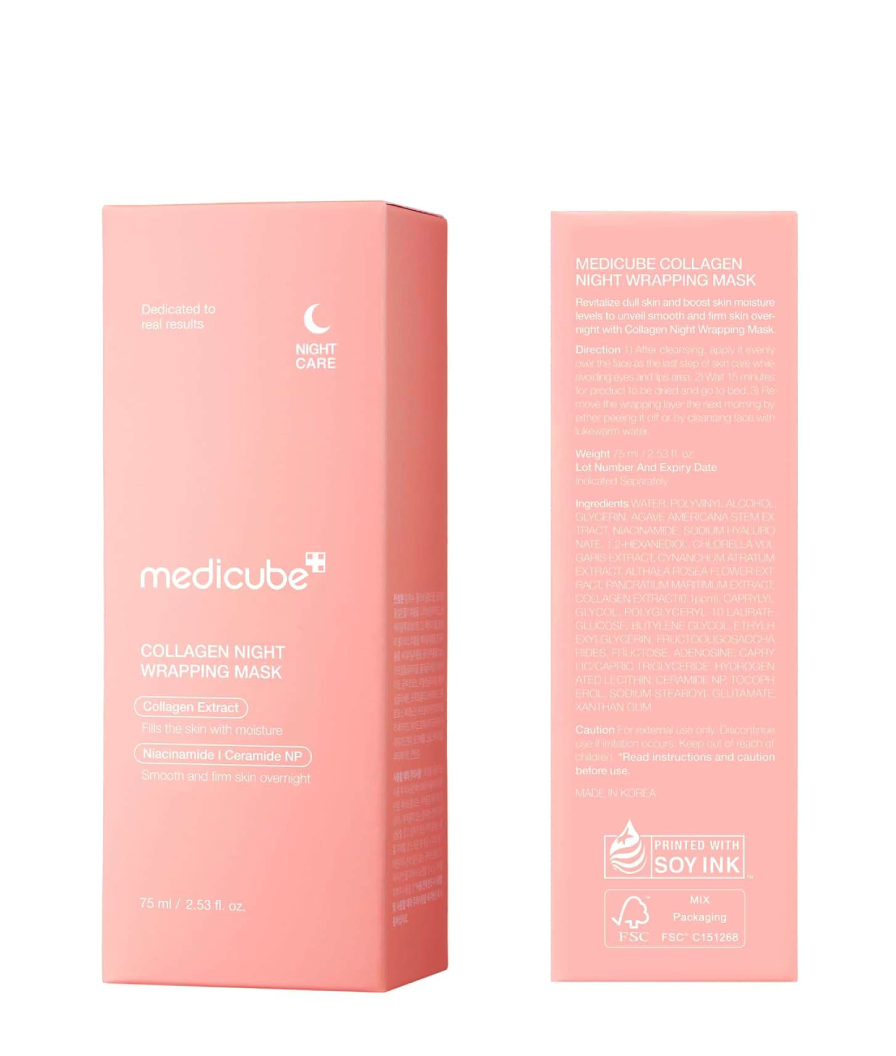 Омолаживающая ночная маска-плёнка Medicube Collagen Night Wrapping Mask на основе коллагена повышает плотность, упругость и эластичность, оказывает лифтинг-эффект, придает лицу здоровое сияние и тонус. Стимулирует синтез коллагеновых и эластиновых волокон, укрепляет и замедляет возрастные изменения, увлажняет и способствует удержанию влаги, предупреждает появление морщин.