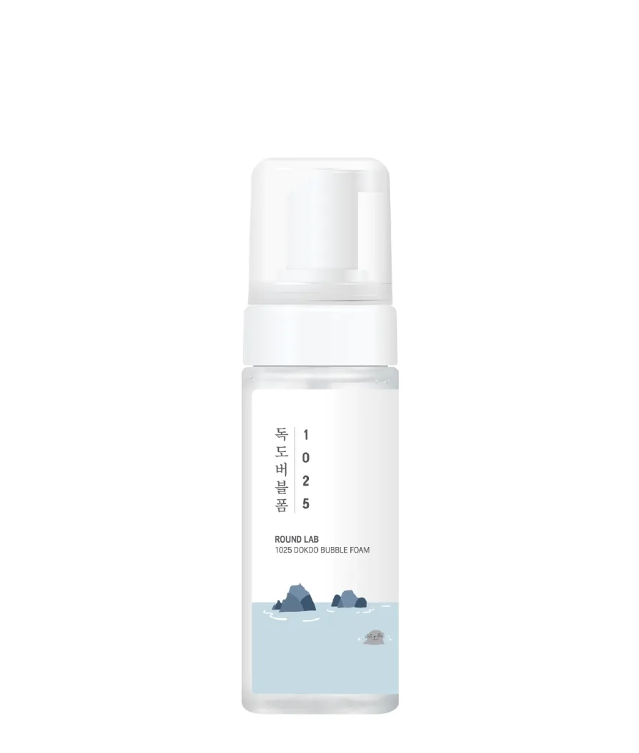 Мягкая пенка-мусс ROUND LAB 1025 Dokdo Bubble Foam на основе морской воды удаляет остатки макияжа, загрязнения и излишки кожного сала, очищает поры, препятствует появлению воспалений и чёрных точек, смягчает и поддерживает гладкость рельефа. Продукт интенсивно увлажняет и успокаивает кожу, хорошо очищает, при этом не вызывает сухости и чувства стянутости, не нарушает естественный защитный слой кожи.