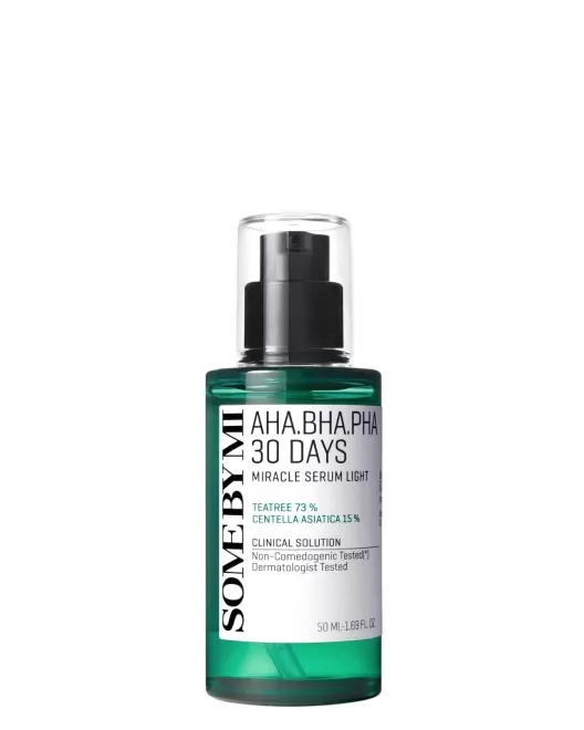 Облегченная версия сыворотки с кислотами для проблемной кожи SOME BY MI AHA BHA PHA 30 Days Miracle Serum Light деликатно отшелушивает кожу, обладает успокаивающим эффектом и способствует восстановлению ровного и здорового тона лица. Формула сыворотки усилена более высоким содержанием успокаивающих ингредиентов, при это текстура стала менее маслянистой в сравнении с оригинальной версией.