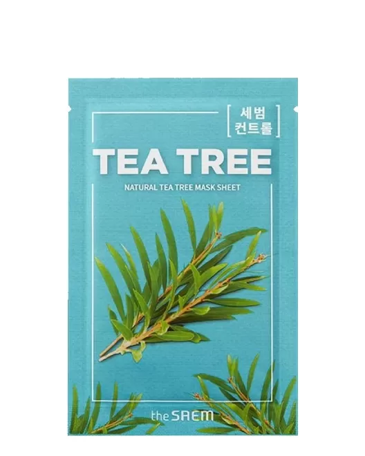 Тканевая маска the SAEM Natural Tea Tree Mask Sheet для лица с экстрактом чайного дерева препятствует образованию воспалений и возвращает коже ровный тон, увлажняет и успокаивает, устраняет покраснения и зуд. Освежает и в перспективе уменьшает количество воспалений, т. к. обладает сильным противовоспалительным и антибактериальным эффектом.