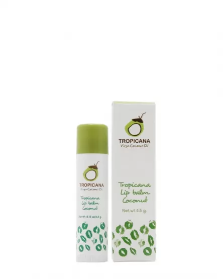 Питательный бальзам для губ TROPICANA Lip Balm на основе органического кокосового масла в стике увлажняет и интенсивно питает губы, устраняет повреждения и шелушение, предупреждает их появление.