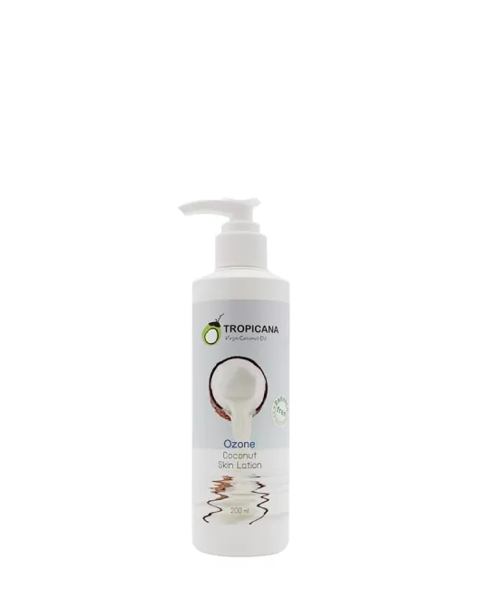 Питательный лосьон для тела TROPICANA Ozone Coconut Skin Lotion на основе кокосового масла с легкой, быстро впитывающейся текстурой интенсивно питает и увлажняет кожу, устраняет сухость и шелушение, поддерживает защитный барьер кожи, восстанавливает, улучшает тон и цвет кожи, способствует заживлению, повышает упругость и эластичность, разглаживает и смягчает. Обладает освежающим водным ароматом. Не содержит парабенов, силикона, минерального масла, не тестируется на животных, веганская формула.
