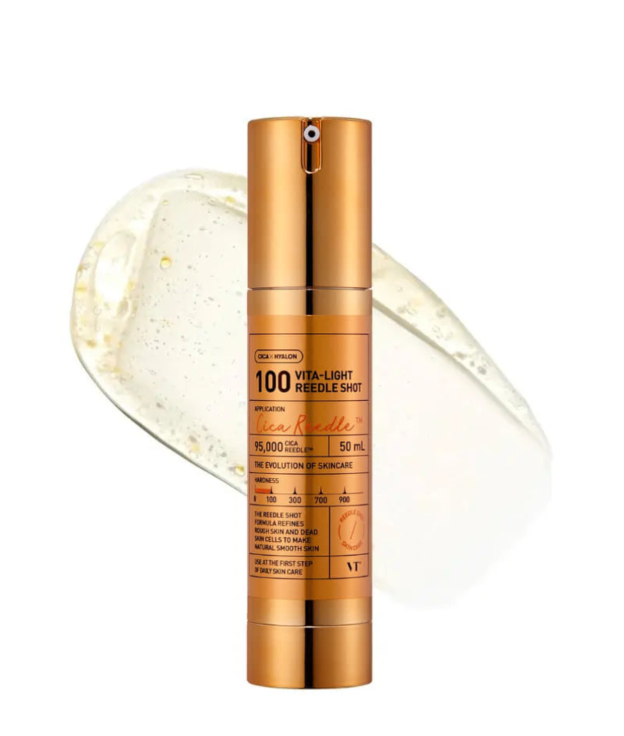 Ампульное высококонцентрированное средство VT COSMETICS Vita-Light Reedle Shot 100 можно использовать ежедневно, но не используйте его с Reedle Shot 50, 300 и 700 одновременно.