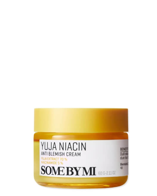Crema cu efect de iluminare SOME BY MI Yuja Niacin Anti Blemish Cream pe bază de extract de yuzu (70%) și niacinamidă (5%) uniformizează nuanța pielii, iluminează delicat pigmentarea și post-acneea, elimină tenul tern, împrospătează și oferă pielii strălucire naturală. Crema are un puternic efect antioxidant, întărește bariera protectoare, hidratează intens și ajută la eliminarea iritațiilor și roșeții.