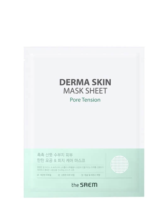 Masca din țesătură the SAEM Derma Skin Mask Sheet Pore Tension pentru îngustarea porilor are un efect tonifiant, revigorant și de reglare a sebumului. Masca hidratează, calmează pielea, elimină roșeața și umflarea, reduce reactivitatea pielii și are efect antiinflamator. Produsul crește elasticitatea, strânge eficient porii, reduce producția de sebum și intensitatea proceselor inflamatorii. Are efect de întinerire și antioxidant, ajută la uniformizarea nuanței pielii.