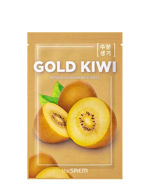 Masca din țesătură de la the SAEM Natural Gold Kiwi Mask Sheet este o mască din țesătură cu efect reparator pe bază de extract de kiwi auriu, stimulează reînnoirea pielii, hidratează, hrănește, saturează cu vitamine și elimină tenul tern. Masca ajută la menținerea funcțiilor protectoare ale pielii, ameliorează iritația și roșeața, împrospătează și tonifică. Are un efect calmant și antioxidant, întinerește și reduce strălucirea pigmentării.