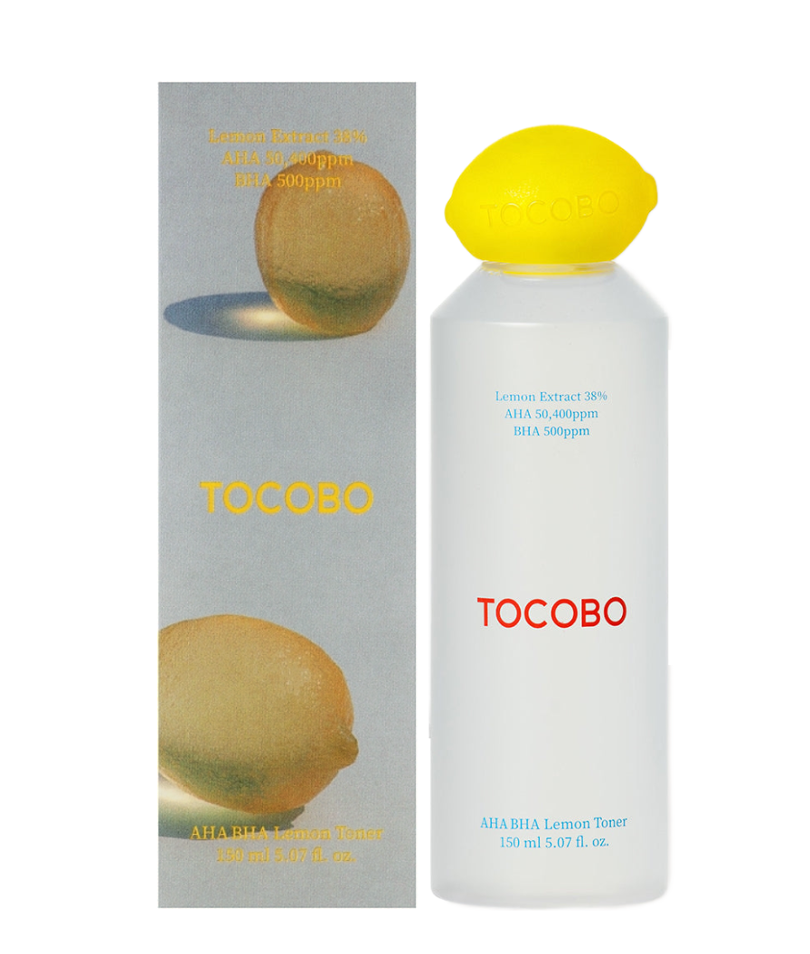 Tonerul regenerant TOCOBO AHA BHA Lemon Toner combină vitamina C naturală cu complexul de acizi AHA și BHA, având un efect hidratant, eliminând aspectul tern al tenului și contribuind la uniformizarea reliefului pielii. Tonerul conține 38% extract de lămâie, având un efect de iluminare și uniformizare a nuanței, acțiune antiinflamatoare și seboreglatoare, îngustă porii și previne apariția pigmentării, exfoliază delicat stratul cornos de celule, reînnoind pielea.