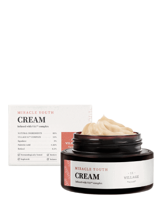 Formulată cu 0,1% retinol pentru a stimula noua generație de celule, Miracle Youth Cream reduce aspectul liniilor fine și profunzimea acestora. Având un efect de hrănire intens, crema acționează în mai multe direcții deodată: reînnoiește pielea, întinerește, iluminează pigmentarea, uniformizează tonusul, netezește pielea, nivelează tonusul. Crema conferă prospețime feței și elimină semnele de oboseală, începând procesele de regenerare, astfel va fi deosebit de utilă pentru tenul matur și pielea cu primele modificări legate de vârstă.