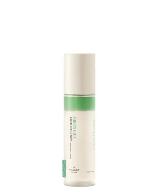Village 11 Factory Fresh Dewy Green Cica Facial Serum Mist pe bază de extract de centella are un efect rapid de calmare și hidratare. Produsul are efect de întinerire și antioxidant, reface și păstrează bariera protectoare, care ajută la eliminarea sensibilității, deshidratării, peelingului și iritațiilor și la menținerea tinereții pielii.