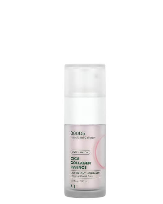 Esența anti-îmbătrânire VT COSMETICS Cica Collagen Essence pe bază de colagen de pește ușor digerabil și vitamina A întinerește eficient pielea, netezește și reduce profunzimea ridurilor, calmează intens și hidratează pielea. Esența uniformizează nuanța pielii, adaugă strălucire, elimină tenul tern și oferă o hidratare prelungită. Produsul uniformizează tonusul, crește fermitatea și elasticitatea.