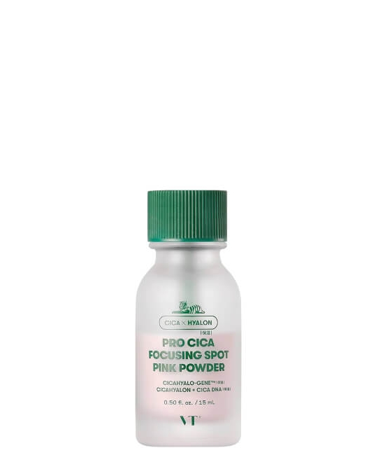 Produs antiinflamator pentru aplicare locală VT COSMETICS Pro Cica Focusing Spot Pink Powder se aplică pe zona de inflamație, are la bază un conținut ridicat de calamină, care are efecte antipruriginoase, de uscare, de calmare și de răcire.